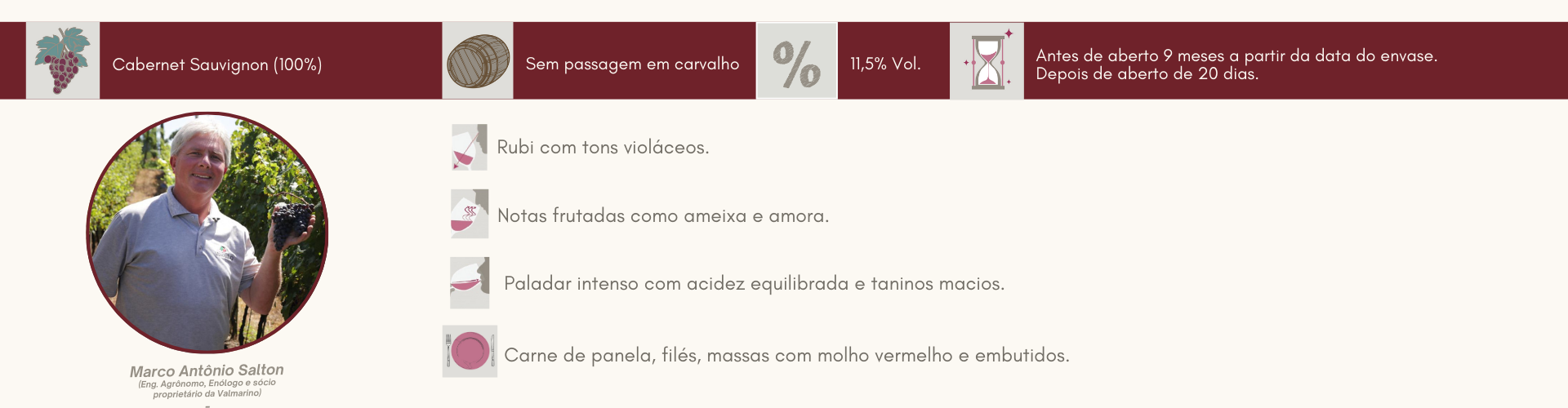 A tradição italiana de cultivar a uva e elaborar o próprio vinho, foi transmitida de pai para filho desde a chegada do patriarca da família, em 1878, no município de Bento Gonçalves, localizado na Serra Gaúcha. O enólogo Orval Salton, membro da terceira geração da família Salton, realizou seu sonho fundando o Estabelecimento Vinícola Valmarino em 1997. O amor à terra, a paixão e a dedicação aos vinhedos são os fatores responsáveis pelo reconhecimento da qualidade dos produtos Valmarino.
